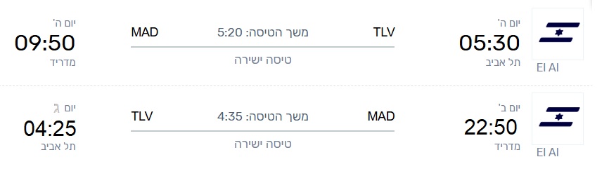 טיסה: תל אביב – מדריד – תל אביב