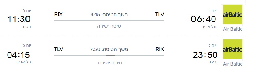 טיסה: תל אביב – ריגה – תל אביב